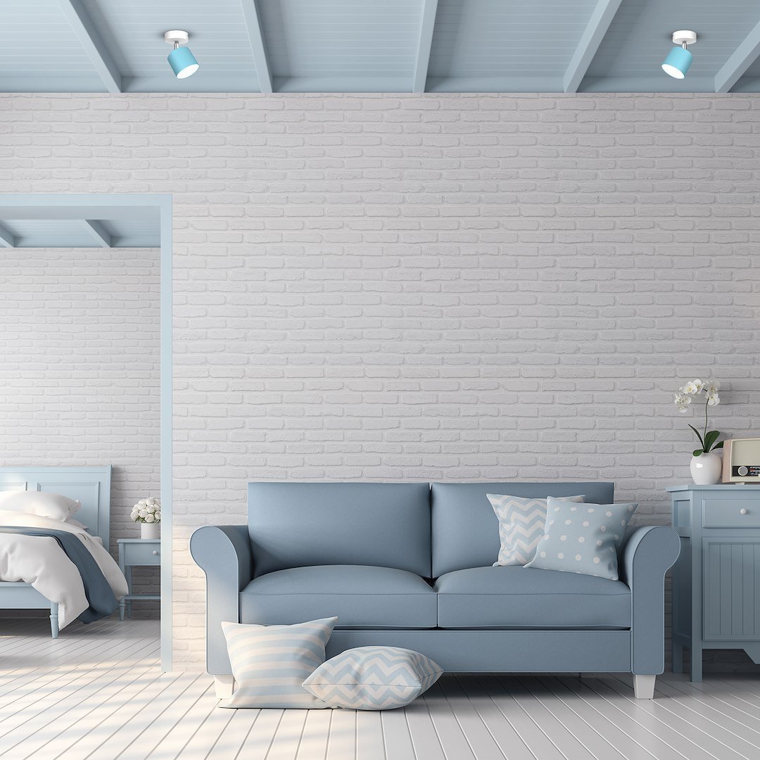 • Reflektorek sufitowy w kolorze błękitnym, na rozecie MLP7604