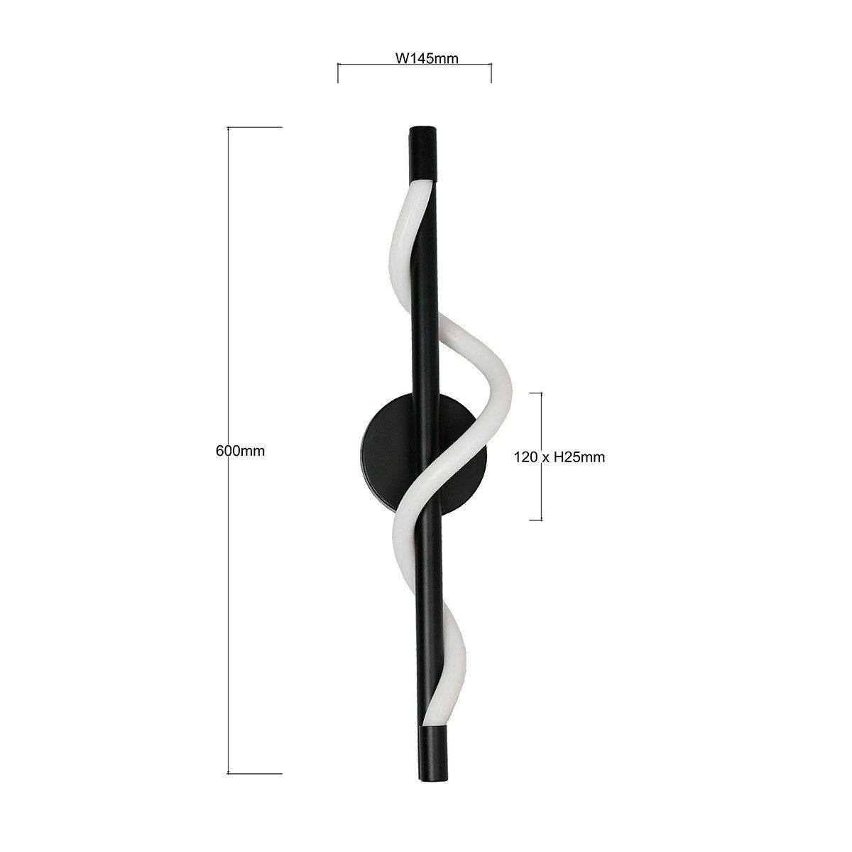 Kinkiet Meleca to nowoczesna oprawa ścienna wykonana z metalu w czarnym kolorze. Klosz w postaci spiralnie skręconej tuby wykonano z elastycznego akrylu.