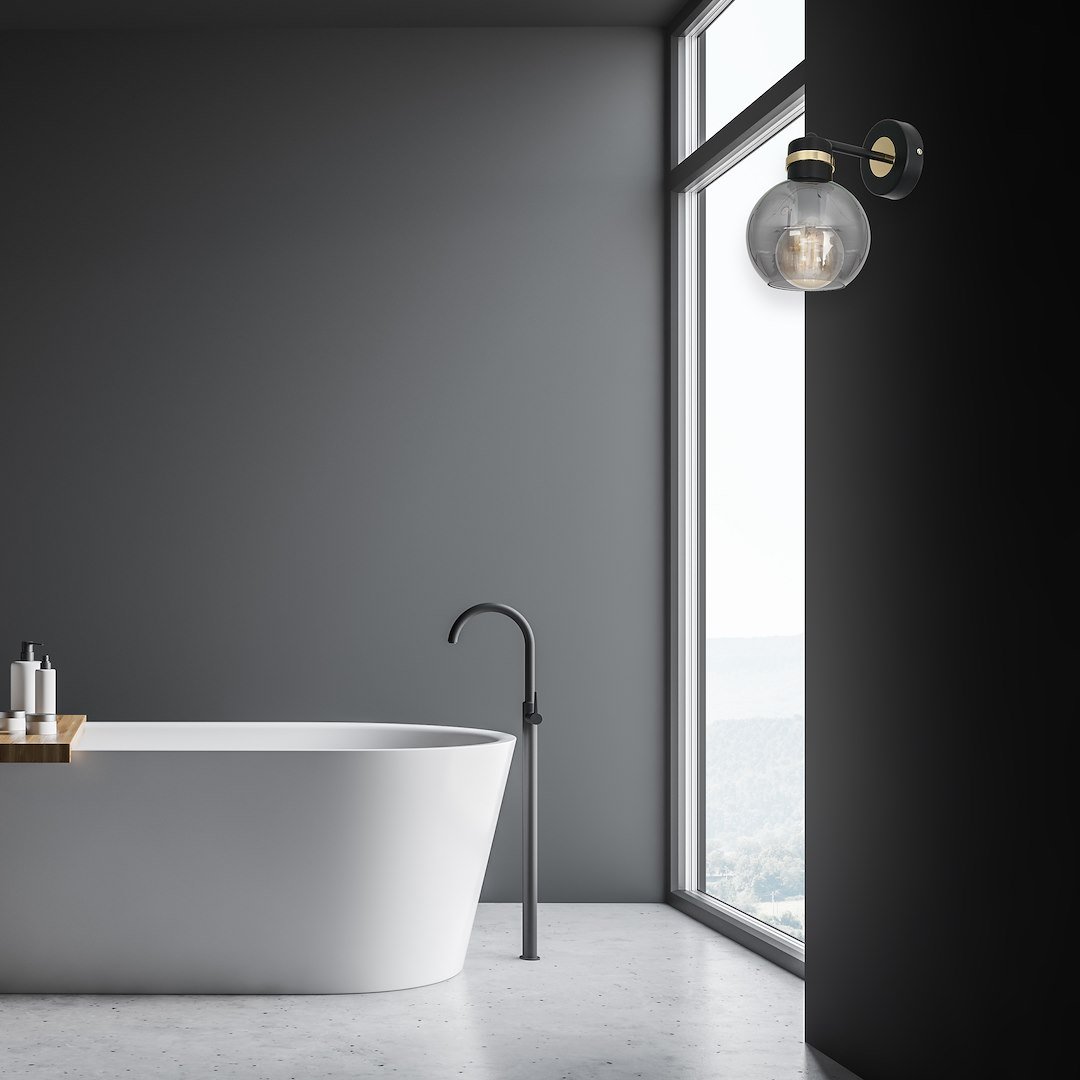 Niewielkie kinkiety z dymnego szkła świetnie prezentować się będą także w łazience,