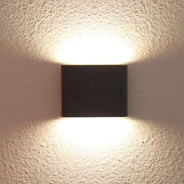Czarny kinkiet Sapri wykonany z metalu. Kinkiet posiada prostą, geometryczną formę, która wpisuje się w nowoczesne, minimalistyczne trendy. Posjada klasę ochronności IP54, co oznacza, że kinkiet jest odporny na krople padające pod dowolnym kątem ze wszystkich stron (deszcz) oraz jest pyłoszczelny. Dzięki temu kinkiet Sapri może być użyty również na zewnątrz budynku. Kinkiet posiada wbudowane światło LED o neutralnej barwie 4000K oraz dwa punkty światła, jedno skierowane ku dołowi, drugie ku górze.