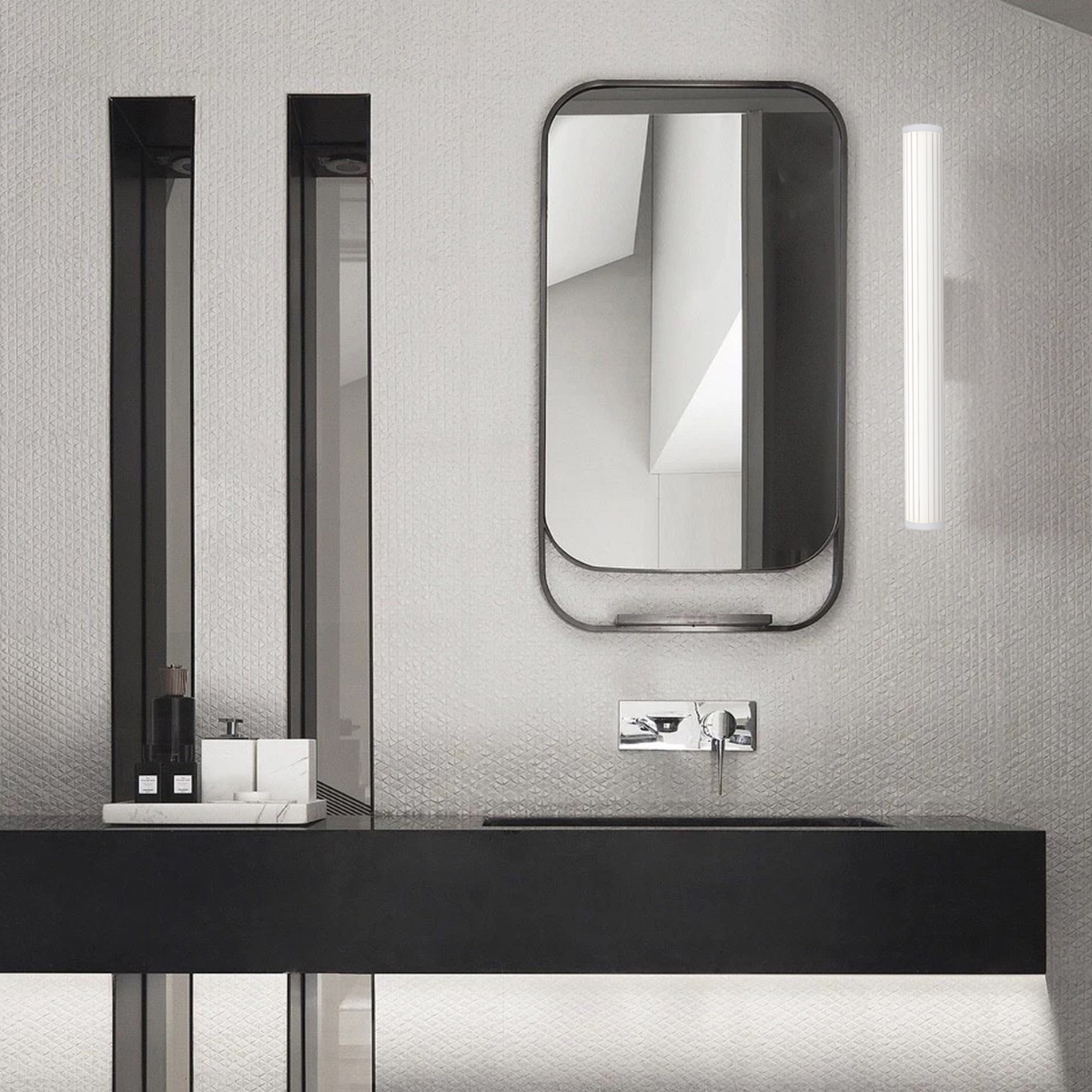 Styl i design: Smukła, minimalistyczna forma w białym wykończeniu, idealna do jasnych i przestronnych aranżacji.Materiały i wykonanie: Połączenie metalu i akrylu gwarantuje trwałość i elegancki wygląd.Wymiary: Długość 45 cm, średnica 6 cm, wysokość 12 cm – perfekcyjne proporcje do montażu nad lustrem.Źródło światła: LED 8W, barwa CCT 3000K/4000K/6000K.Bezpieczeństwo: IP44 – odporność na wilgoć i zachlapania.Zastosowanie: Łazienki, korytarze, garderoby i nowoczesne wnętrza mieszkalne.