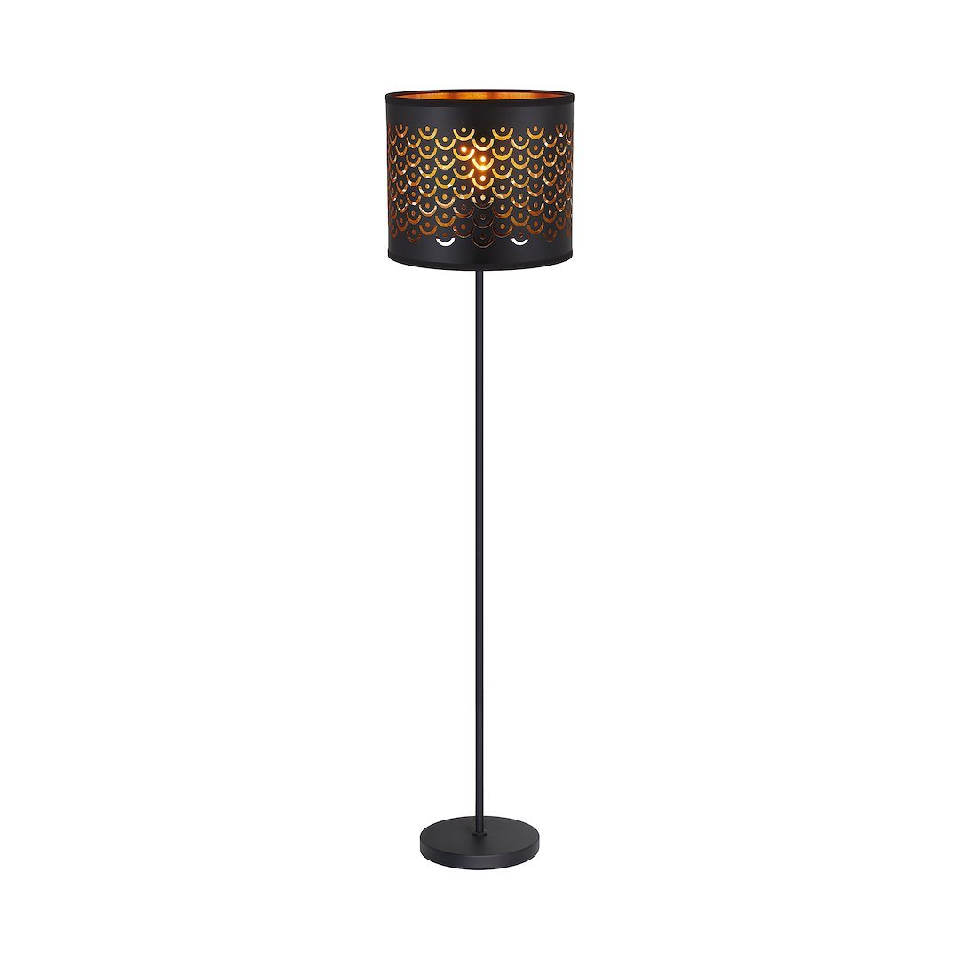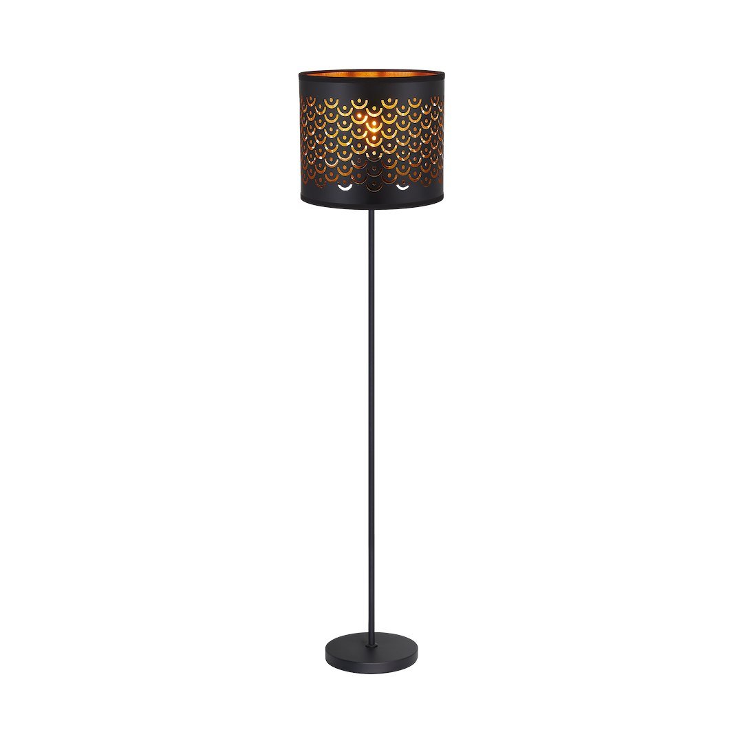 Elegancka lampa podłogowa MORGAN to połączenie klasycznej formy z nowoczesnym wykończeniem – czarna konstrukcja z detalami w kolorze złota przyciąga uwagę i nadaje wnętrzu szlachetnego charakteru. Dzięki wysokiej podstawie oraz szerokiemu abażurowi, świetnie sprawdzi się jako doświetlenie salonu lub kącika czytelniczego. Pasuje do standardowych żarówek z dużym gwintem i nie wymaga skomplikowanego montażu – wystarczy podłączyć do gniazdka i cieszyć się światłem.