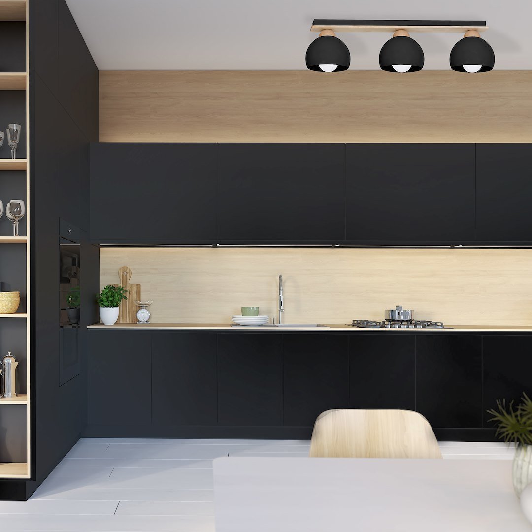 Oświetlenie z kolekcji Dama Black to 2 kinkiety i 5 lamp sufitowych. W skład wiszących lamp sufitowych wchodzi oświetlenie z jednym, trzema i pięcioma punktami światła oraz na listwie z trzema punktami światła, a także lampa sufitowa na listwie z trzema punktami światła.