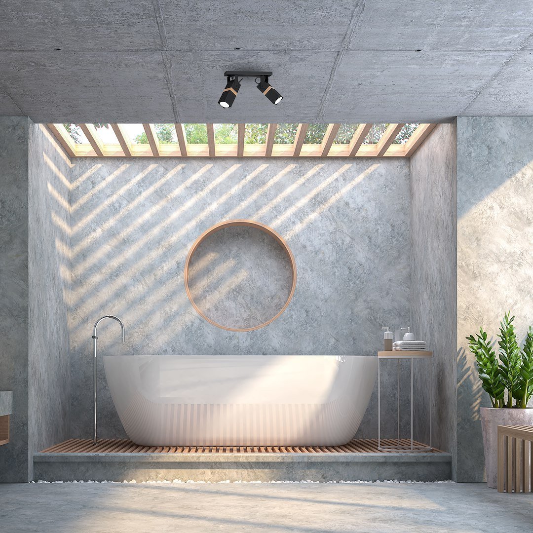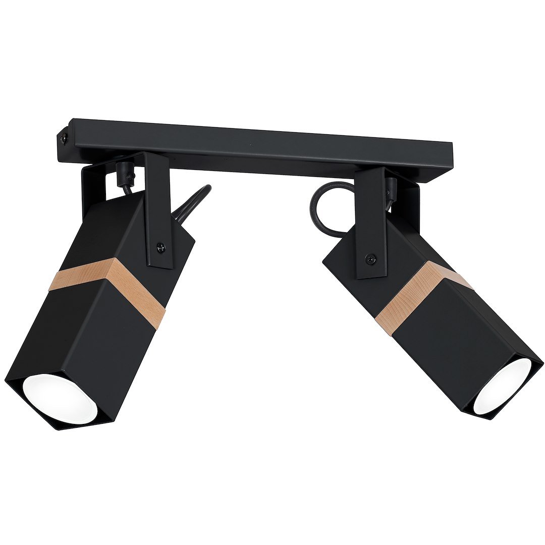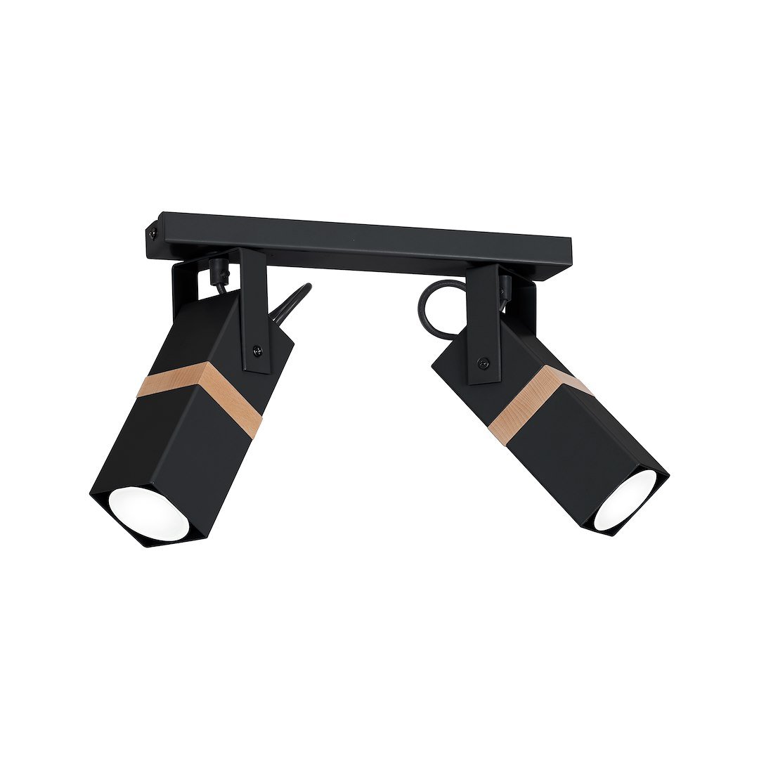 • lampa sufitowa z dwoma punktami świetlnymi czarna z jasnym drewnem MLP5401