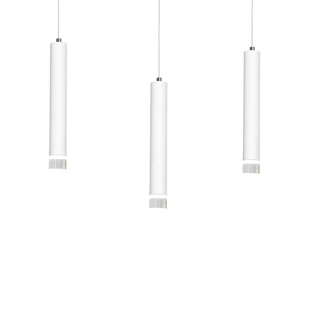 „Wiszaca lampa sufitowa z trzema źródłami światła, które można regulować od 60 do 100 cm wysokości. Takie rozwiązanie pozwala na dopasowanie jej do pomieszczeń zarówno wysokich, jak i niskich. Źródłem światła są zainstalowane na stałe moduły LED o mocy 15 W. Dzięki zastosowaniu technologii LED uzyskujemy efekt niskiego zużycia energii przy wysokiej wydajności oświetlenia. Z kolei barwa oświetlenia została dobrana z uwzględnieniem tego, iż lampa ma gwarantować komfort jej użytkowania, stąd barwa najbardziej neutralna 4000 K. Produkt wykonano z metalu i akrylu.