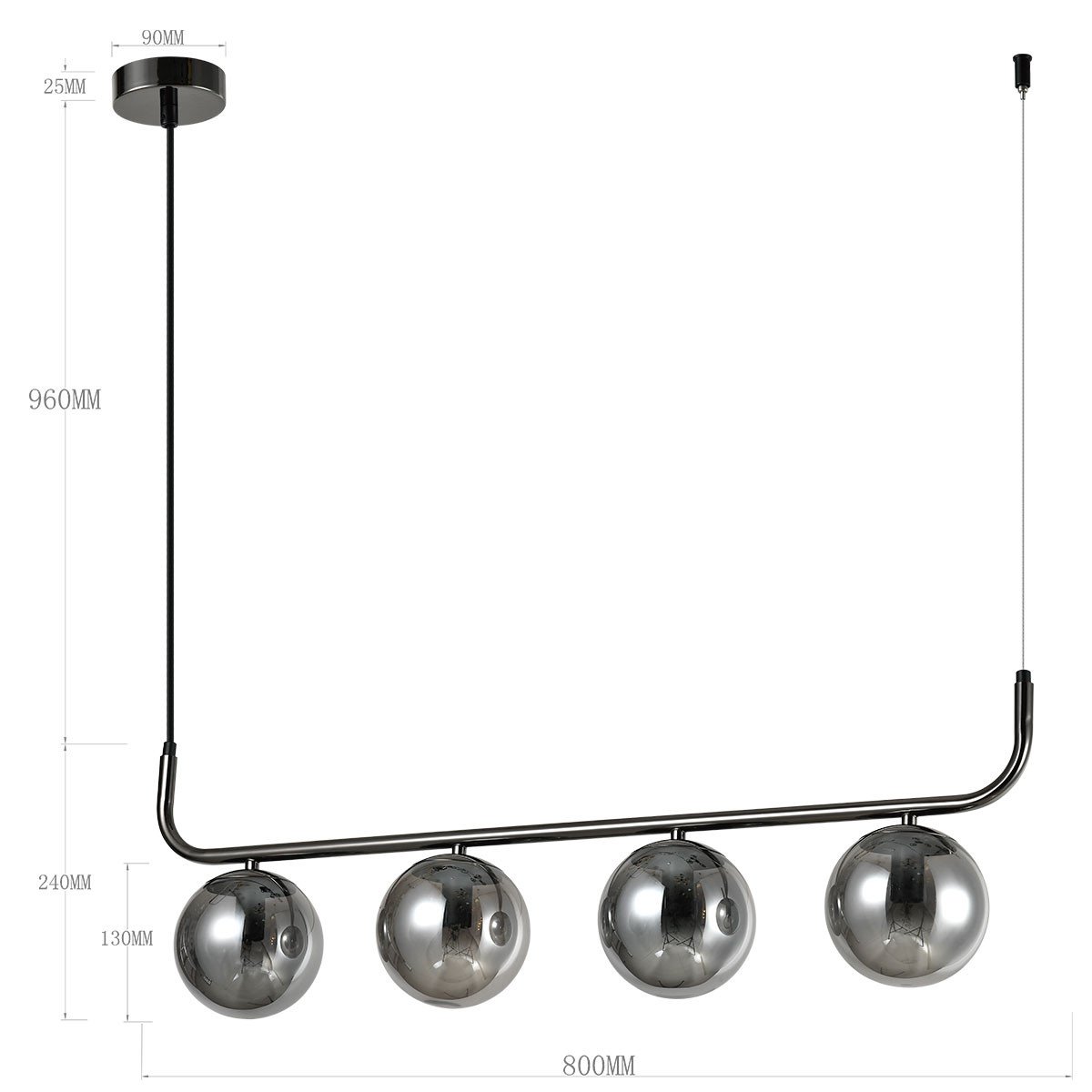 Lampa wisząca Alisa 4 to elegancki i funkcjonalny dodatek do każdego wnętrza, wykonany z metalu w grafitowym kolorze i wyposażony w cztery szklane klosze. Przydymione klosze lampy zapewniają delikatne, rozproszone światło, tworząc przyjemną atmosferę w pomieszczeniu.