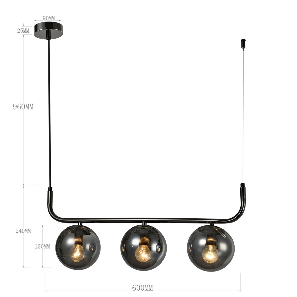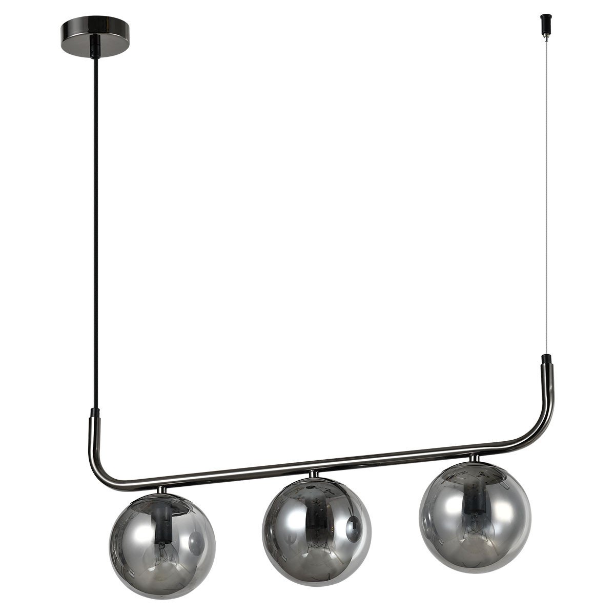 Lampa wisząca Alisa 3 to elegancki i funkcjonalny dodatek do każdego wnętrza, wykonany z metalu w grafitowym kolorze i wyposażony w trzy szklane klosze. Przydymione klosze lampy zapewniają delikatne, rozproszone światło, tworząc przyjemną atmosferę w pomieszczeniu.
