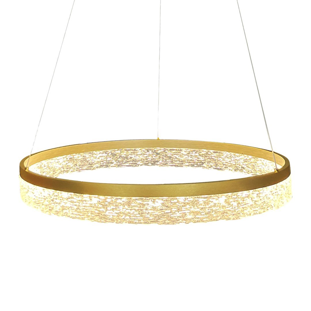 Nowoczesna lampa wisząca GALA GOLD 25W LED to połączenie elegancji i subtelnego blasku w formie jednej świetlistej obręczy. Zawieszona na trzech cienkich przewodach, prezentuje się wyjątkowo lekko, niemal jak zawieszona w powietrzu. Jej srebrna obudowa z dekoracyjną strukturą wewnętrzną doskonale rozprasza światło, tworząc efekt iskrzącej powierzchni. Model idealny do nowoczesnych wnętrz mieszkalnych, przestrzeni komercyjnych, salonów, jadalni oraz stref recepcyjnych. Dzięki zintegrowanemu modułowi LED o mocy 25W oferuje jasne, energooszczędne światło w eleganckim wydaniu.