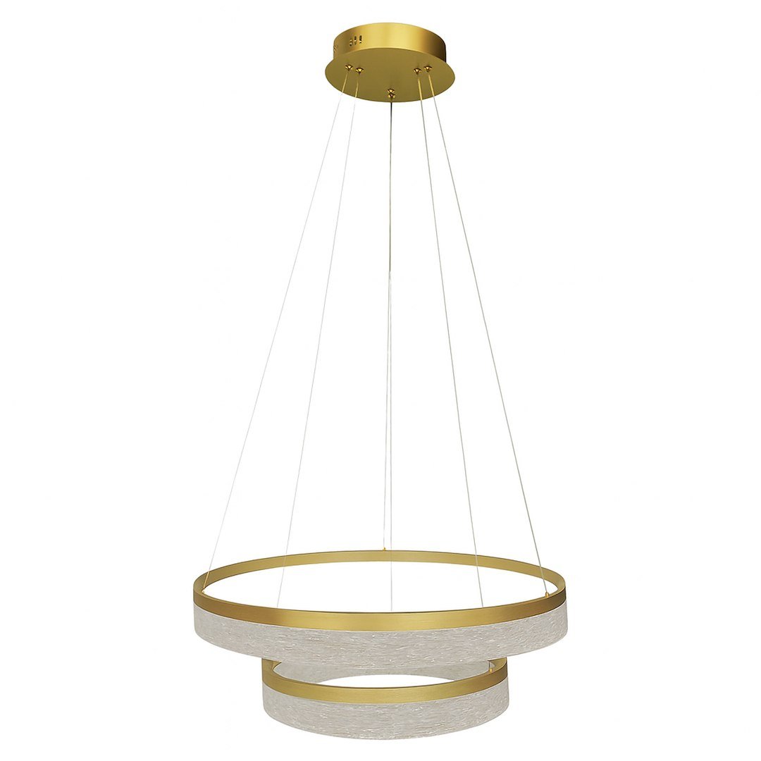 GALA GOLD 54W LED to wyrazista i nowoczesna lampa sufitowa o podwójnej obręczy, która przyciąga wzrok i nadaje wnętrzu charakteru. Dwa świetlne pierścienie o różnej średnicy zawieszone są na cienkich stalowych linkach, tworząc spektakularny, trójwymiarowy efekt. Dzięki mocy 54W i zintegrowanemu modułowi LED, lampa oferuje intensywne, a zarazem przyjemnie rozproszone światło – idealne do dużych pomieszczeń mieszkalnych i komercyjnych. Połyskliwa struktura wewnętrzna kloszy dodaje elegancji i subtelnego błysku.