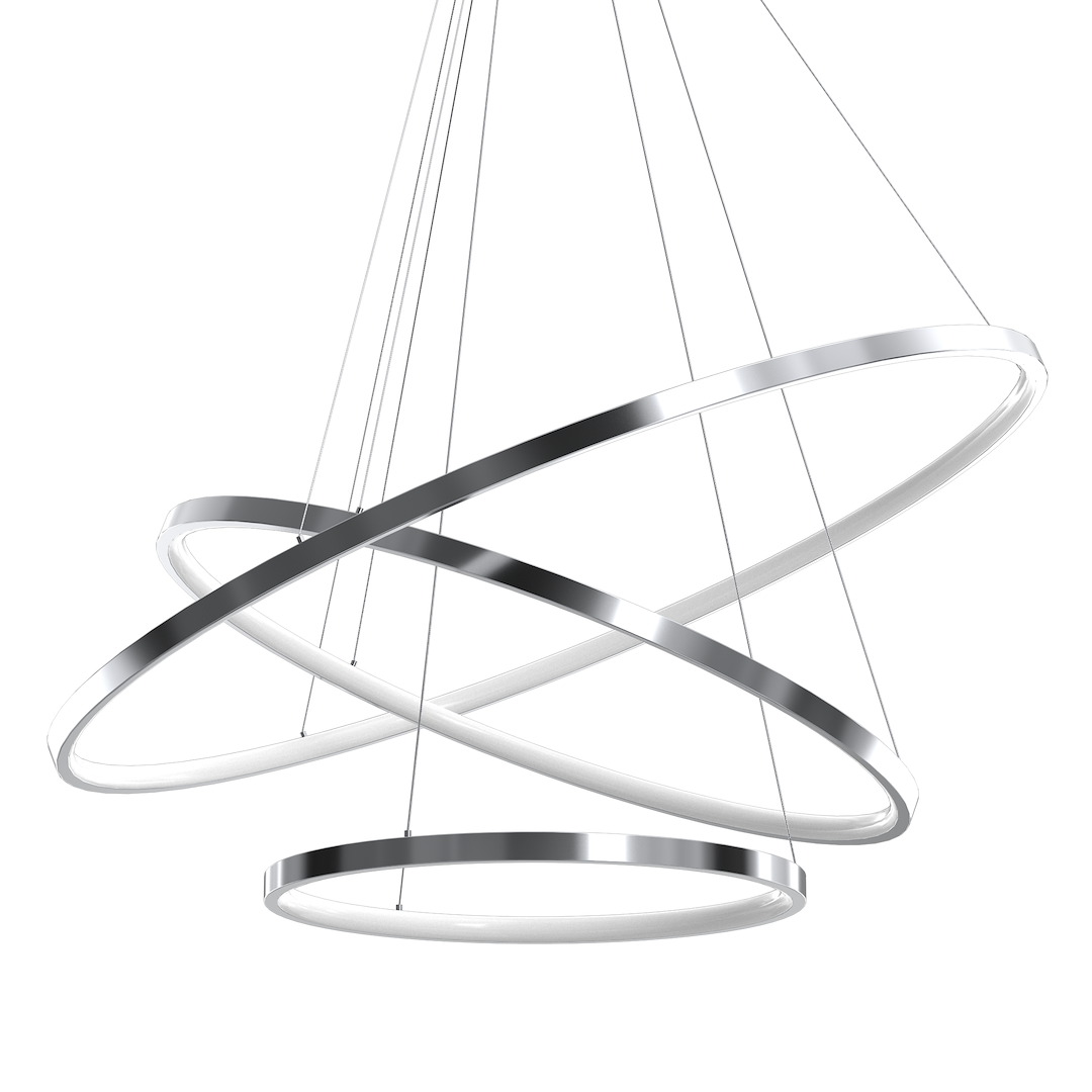 Lampa wisząca HOOP 93W posiada trzy źródła światła zamontowana w okrągłych oprawach o średnicy: 40 cm, 60 cm i 80 cm. Zainstalowano w nich wymienne moduły LED o łącznej mocy 93W LED. Zaletą lampy jest możliwość dowolnej regulacji wysokości opraw od 50 do 90cm. Takie rozwiązanie pozwala na dopasowanie jej do pomieszczeń zarówno wysokich, jak i niskich. Barwę oświetlenia dobrano w taki sposób, aby lampa gwarantowała jak największy komfort jej użytkowania, stąd barwa neutralna 4000K. Lampa HOOP wyróżnia się trzema okrągłymi oprawami, wykończonymi w chromowym kolorze. Całość zaprojektowana w prostej, a zarazem oryginalnej stylistyce. Niezwykle estetyczna forma sprawia, że lampa będzie doskonałym uzupełnieniem stylowych, minimalistycznych wnętrz. Idealnie sprawdzi się jako część wystroju salonu, jadalni i pokoju gościnnego.