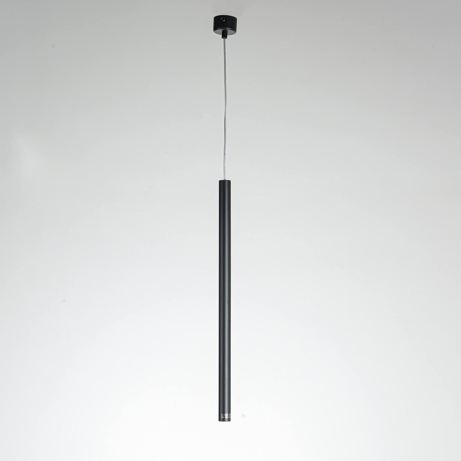 Lampa wisząca Lungo 1 wykonana z metalu w czarnym kolorze prezentuje się jako minimalistyczne oświetlenie, które przyciąga uwagę swoją prostą konstrukcją.