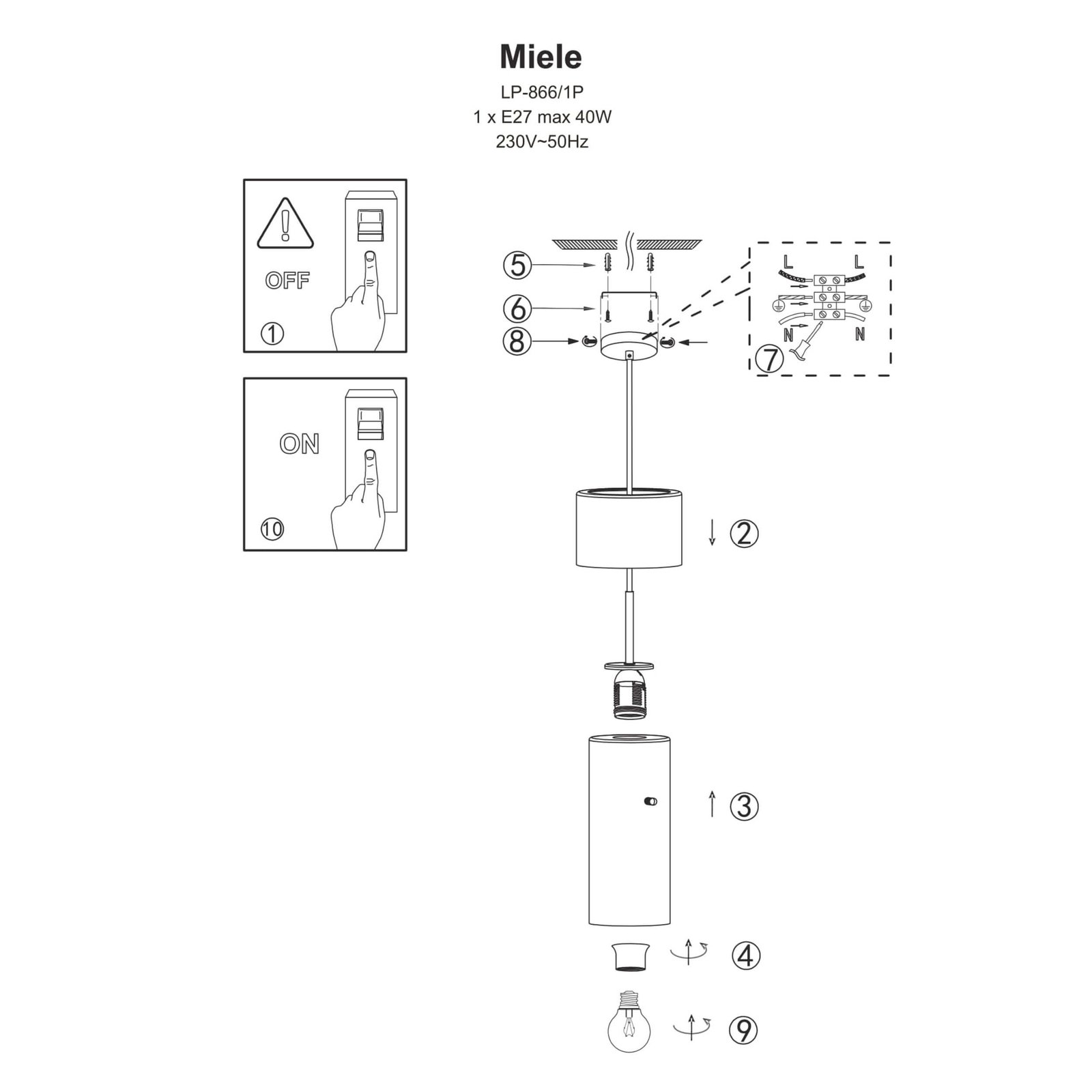 Długa lampa wisząca Miele w szczegółach