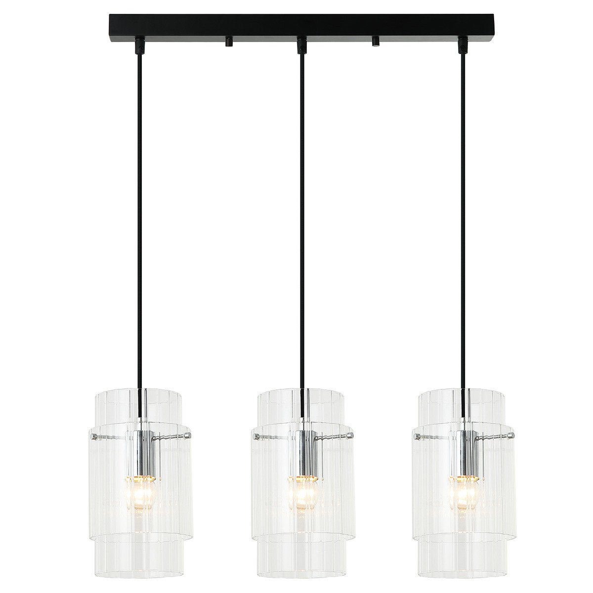 Klosze lampy wykonane z podwójnego, transparentnego szkła delikatnie rozpraszają światło, co tworzy przyjemną atmosferę w pomieszczeniu. Czarna metalowa podsufitka nadaje lampie nowoczesnego wyglądu, podczas gdy srebrne elementy we wnętrzu kloszy dodają jej wyrafinowania i elegancji. Savona 3 została zaprojektowana na trzy żarówki z gwintem E27, co zapewnia odpowiednie oświetlenie w każdym pomieszczeniu. Dzięki swoim wymiarom i funkcjonalności, Savona 3 stanie się nie tylko praktycznym, ale także efektownym elementem wystroju twojego wnętrza.