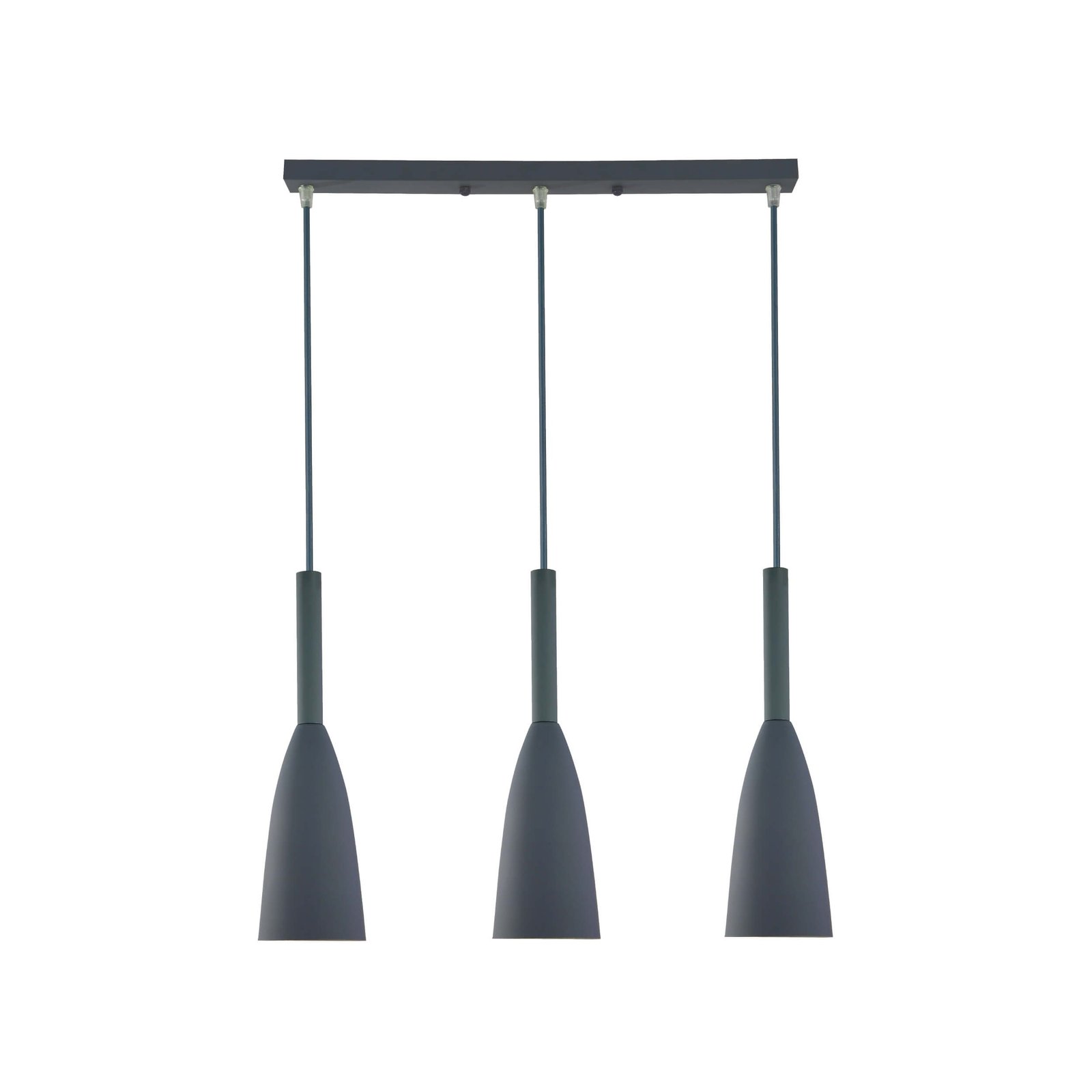Design: Trzy klosze w kształcie tubek, ułożone w jednej linii i zawieszone na prostokątnej podsufitce, tworzą elegancką i spójną kompozycję. Dzięki swojej prostej formie, lampa doskonale komponuje się z różnymi stylami wnętrz, szczególnie z industrialnym i loftowym.