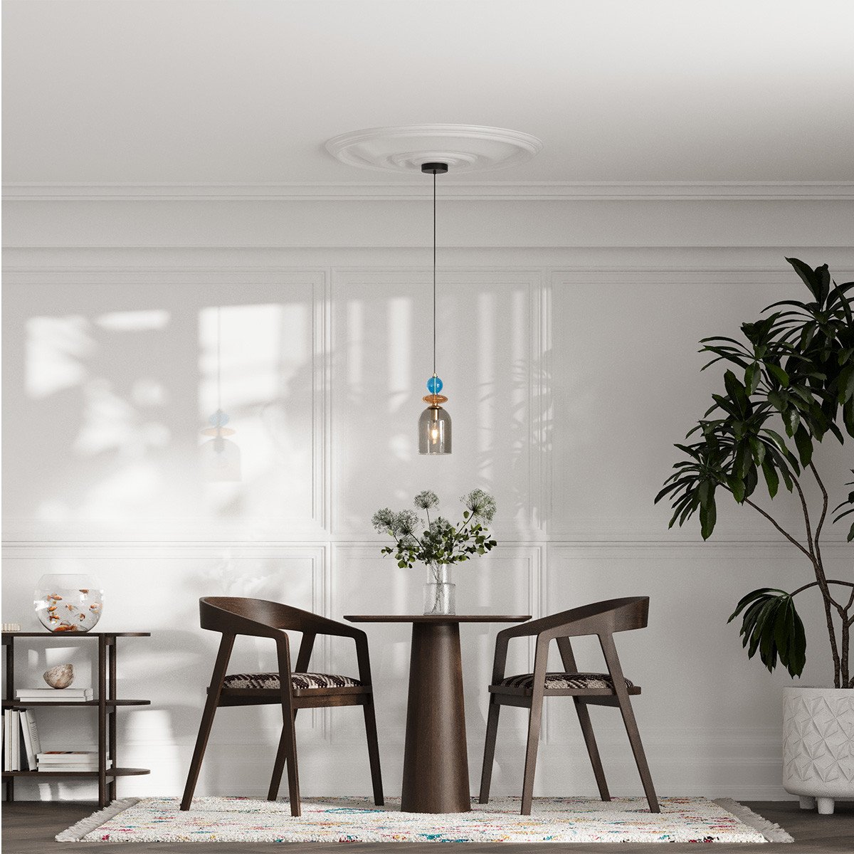 Lampa wisząca Tropea to połączenie szkła i metalu w eleganckim wydaniu postarzanego złota. Jej szklane elementy występują w trzech harmonizujących ze sobą kolorach: dymnym, bursztynowym, turkusowym. Dzięki tej różnorodnej kolorystyce lampa staje się nie tylko funkcjonalnym źródłem światła, ale także wyjątkową ozdobą każdego wnętrza. Idealnie komponuje się z różnorodnymi stylami aranżacyjnymi, takimi jak boho, retro czy vintage. Dzięki imponującej długości, Tropea może pełnić rolę centralnego punktu w jadalni, dodając jej niepowtarzalnego uroku. Świetnie sprawdzi się również jako designerski element wystroju sypialni.