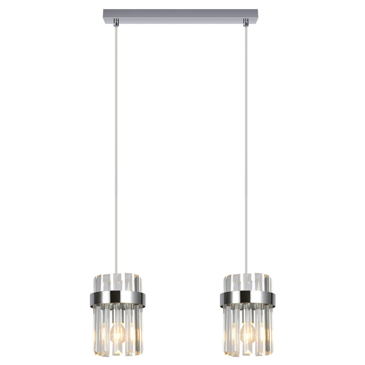Srebrna lampa wisząca z kolekcji Vetro to połączenie elegancji i prostoty w nowoczesnym wydaniu. Podsufitka została wykonana z metalu w kolorze srebra, a klosze z transparentnego szkła. Transparentne elementy efektownie rozpraszają światło, tworząc przyjemną atmosferę we wnętrzu. Model przeznaczony jest do żarówek z gwintem E14. Lampa doskonale sprawdzi się nad stołem, wyspą kuchenną lub w innych strefach, gdzie liczy się zarówno funkcjonalność, jak i estetyka.