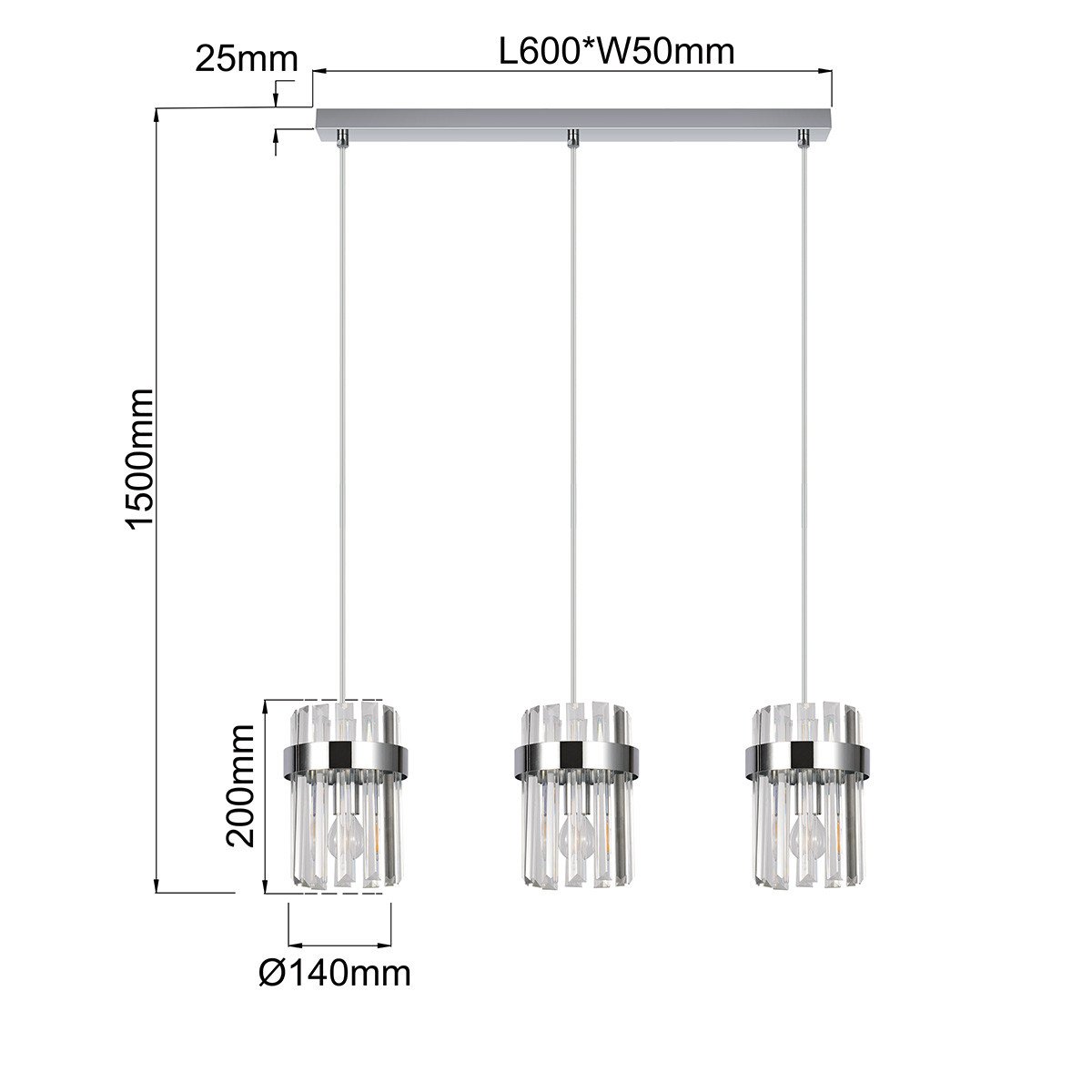 Srebrna lampa wisząca z kolekcji Vetro to połączenie elegancji i prostoty w nowoczesnym wydaniu. Podsufitka została wykonana z metalu w kolorze chromu, a klosze z transparentnego szkła. Transparentne elementy efektownie rozpraszają światło, tworząc przyjemną atmosferę we wnętrzu. Model przeznaczony jest do żarówek z gwintem E14. Lampa doskonale sprawdzi się nad stołem, wyspą kuchenną lub w innych strefach, gdzie liczy się zarówno funkcjonalność, jak i estetyka.