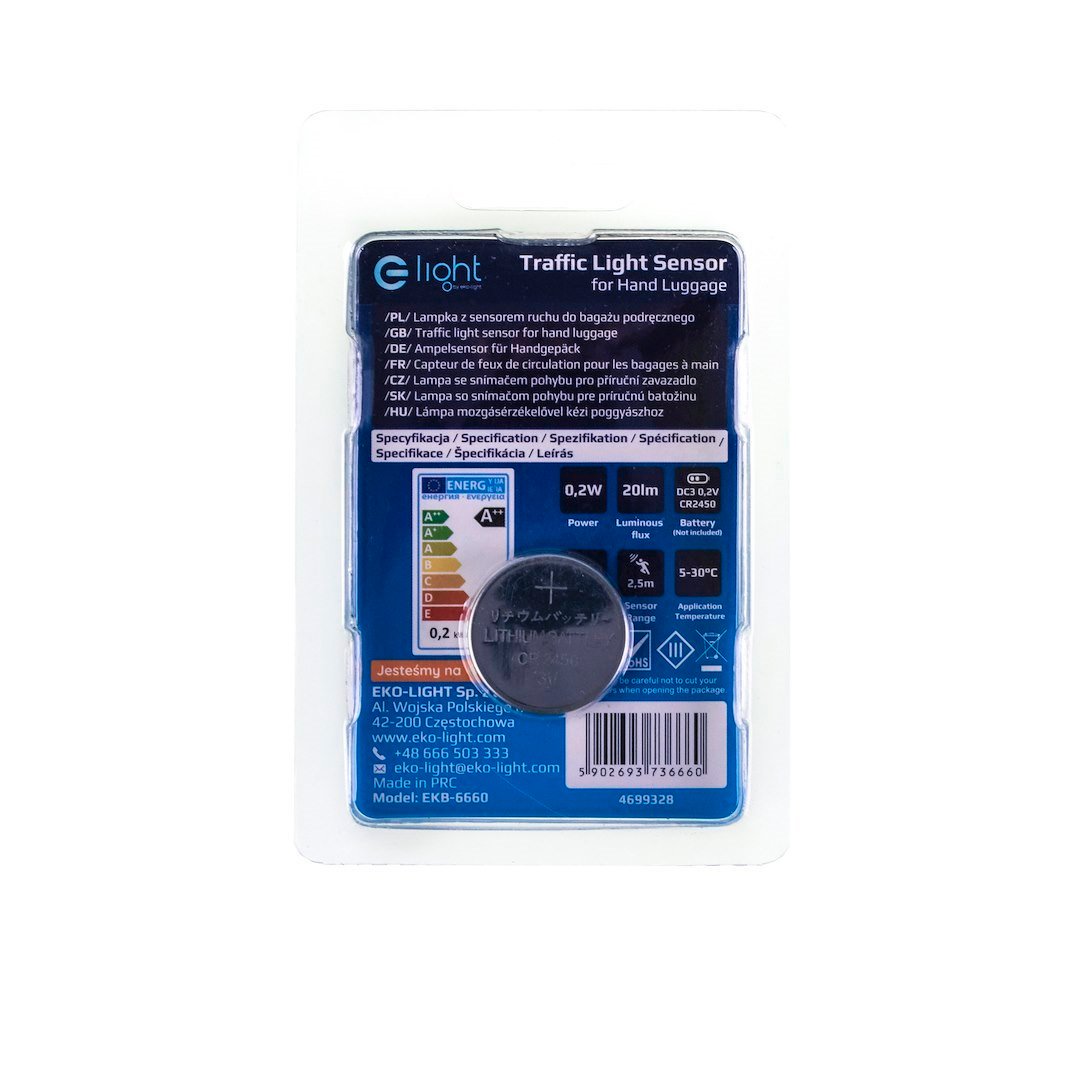 Owalna lampka z wbudowanym automatycznym sensorem ruchu do bagażu podręcznego to bardzo przydatny gadżet, który powinien posiadać każdy miłośnik podróżowania. Model ten wyposażony jest w ekologiczne światło LED, które dzięki swojej trwałości i obudowie odpornej na urazy może posłużyć na długie lata. Lampka działa z mocą równą 0,2 W, przy strumieniu światła o wartości 20 Im. Ma temperaturę barwową o wartości 4000 K, co oznacza, że barwa światła jakie emituje jest całkowicie neutralna. Warty uwagi jest także stopień ochrony równy IP 20, który zapewnia ochronę przed szkodliwymi pyłkami i kurzem. Wymiary tego urządzenia wyglądają następująco: szerokość 30 mm, głębokość 15 mm, natomiast wysokość 55 mm. Model ten waży zaledwie 0,03 kg.