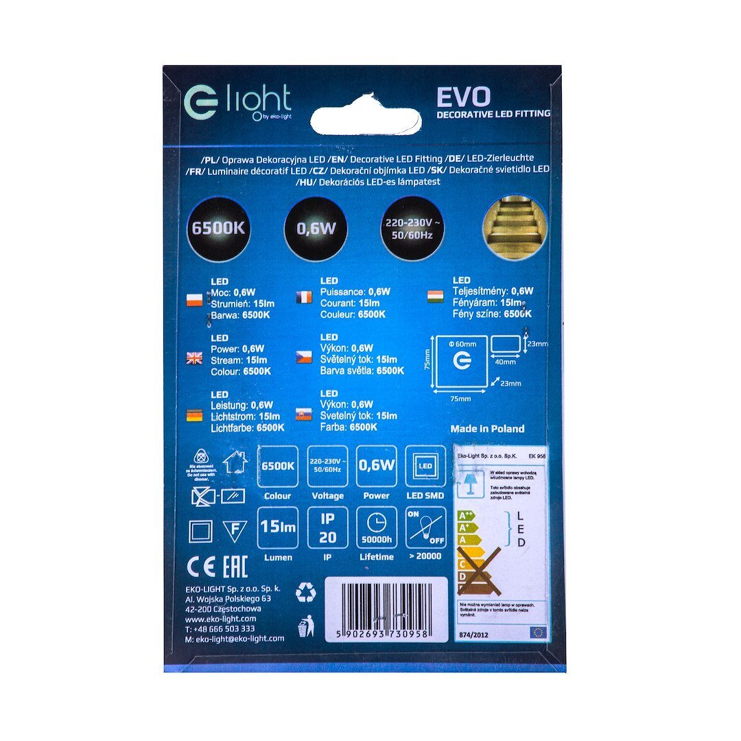 Oprawy Schodowe Eko-Light to wysokiej jakości oprawa LED o charakterze dekoracyjno-użytkowym. Znajduje zastosowanie przy oświetlaniu korytarzy, ciągów schodowych, dekoracyjnym podświetlaniu mebli oraz tworzeniu aranżacji świetlnych w architekturze wnętrz. Oprawa montowana do puszki instalacyjnej O60 bezposrednio na 230V.