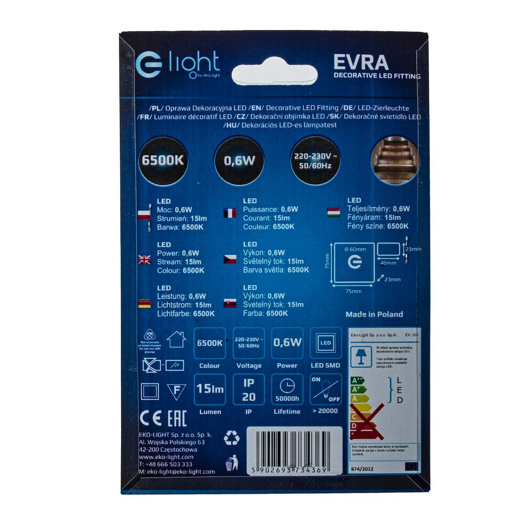 Oprawy Schodowe Eko-Light to wysokiej jakości oprawa LED o charakterze dekoracyjno-użytkowym. Znajduje zastosowanie przy oświetlaniu korytarzy, ciągów schodowych, dekoracyjnym podświetlaniu mebli oraz tworzeniu aranżacji świetlnych w architekturze wnętrz. Oprawa montowana do puszki instalacyjnej O60 bezposrednio na 230V.