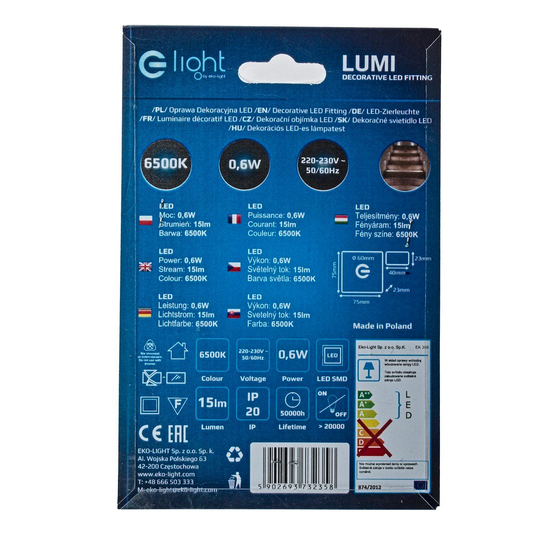 Oprawy Schodowe Eko-Light to wysokiej jakości oprawa LED o charakterze dekoracyjno-użytkowym. Znajduje zastosowanie przy oświetlaniu korytarzy, ciągów schodowych, dekoracyjnym podświetlaniu mebli oraz tworzeniu aranżacji świetlnych w architekturze wnętrz. Oprawa montowana do puszki instalacyjnej O60 bezposrednio na 230V.
