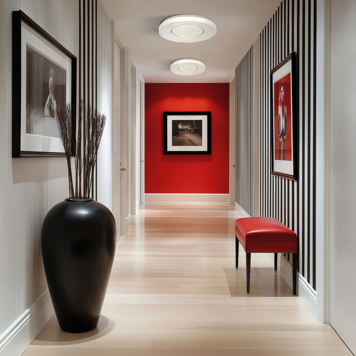Styl i design: Plafon Tenaro 39 cm zachwyca minimalistyczną formą i subtelnym zdobieniem w postaci efektu gwiezdnego pyłu, który nadaje wnętrzu wyjątkowego charakteru.Materiały i wykonanie: Solidna konstrukcja w białym kolorze łączy trwałość i estetykę, doskonale sprawdzając się w codziennym użytkowaniu.Wymiary: Średnica 39 cm, wysokość 6 cm – proporcje dopasowane do średnich i większych pomieszczeń.Źródło światła: Zintegrowany moduł LED 23W, neutralna barwa 4000K, 230V~50Hz, Klasa I.Zastosowanie: Idealny do salonu, sypialni, jadalni oraz korytarza, gdzie pełni rolę zarówno praktycznego źródła światła, jak i dekoracyjnego akcentu.