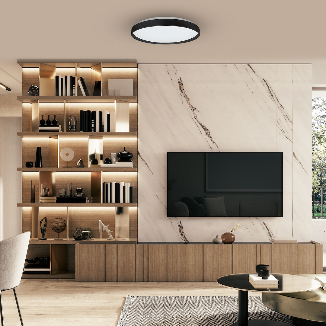 Ta niezwykła plafoniera o średnicy 390 mm to połączenie nowoczesnego designu z kolorową magią. RINGO RGB oferuje pełen zakres barw RGBW, co oznacza, że możesz dostosować oświetlenie do swojego nastroju i potrzeb. Wszystko to jest sterowane za pomocą pilota, co sprawia, że zmiana kolorów staje się prosta i przyjemna.