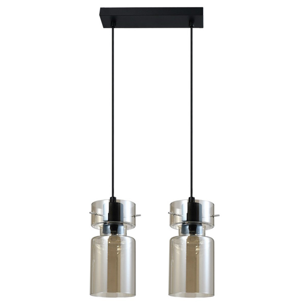 Podwójna lampa wisząca Nivio to eleganckie i funkcjonalne oświetlenie, które doda wnętrzu wyjątkowego charakteru. Dwa dymne, szklane klosze delikatnie rozpraszają światło, tworząc przytulną atmosferę, a czarna, metalowa podsufitka nadaje lampie nowoczesny wygląd.