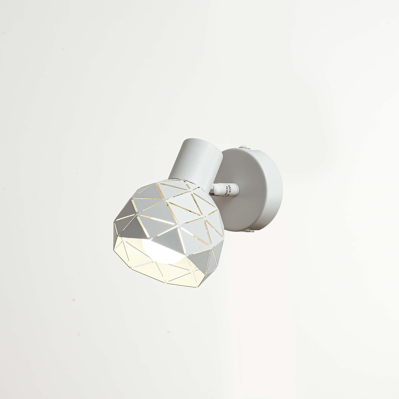 Biały spot Reus 1 to elegancki element oświetleniowy, wykonany z wysokiej jakości metalu. Charakteryzuje się stylowym wzornictwem nawiązującym do estetyki glamour. Klosz zdobiony jest delikatnymi wycięciami, które tworzą subtelne efekty świetlne, przyjemnie rozpraszając światło w pomieszczeniu. Całość została wykończona w eleganckim macie, co dodaje mu elegancji.