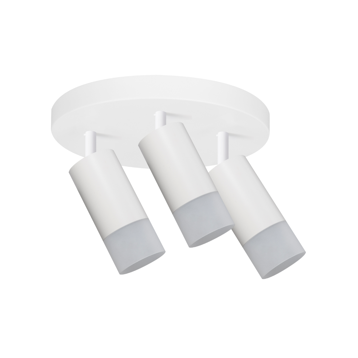 Plafon z kolekcji Sonaya, wykonany z metalu oraz akrylu. Przeznaczony na trzy żarówki z trzonkiem GU10. Korpus lampy jest w kolorze białym.