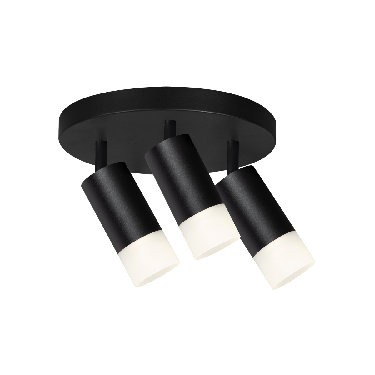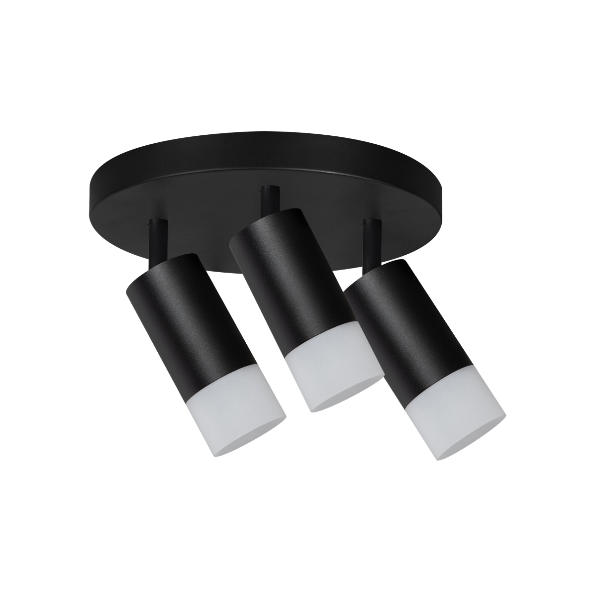 Plafon z kolekcji Sonaya, wykonany z metalu oraz akrylu. Przeznaczony na trzy żarówki z trzonkiem GU10. Korpus lampy jest w kolorze czarnym.