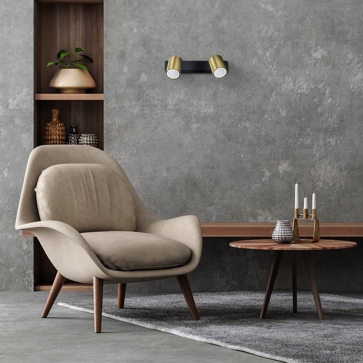 Czarno – złoty, podwójny spot z kolekcji Snow, z miejscem na dwie żarówki GU10. Spot można zamontować na dwa sposoby: na ścianie i na suficie.
