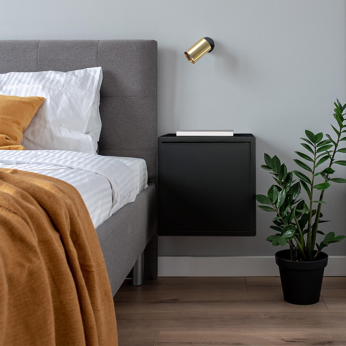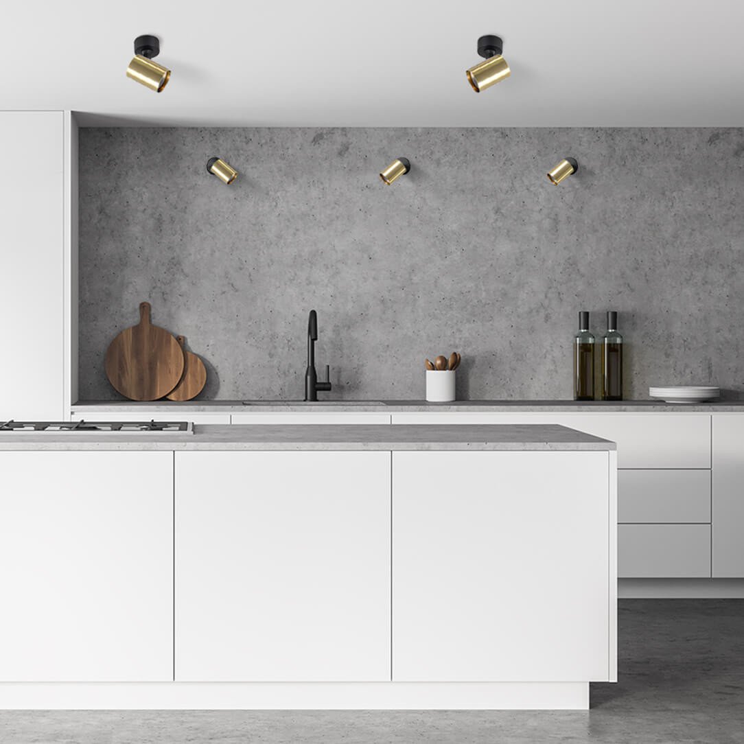 Czarno-złoty, pojedynczy spot z kolekcji Snow, z miejscem na jedną żarówkę o gwincie GU10. Spot przeznaczony jest do montażu zarówno na ścianie, jak i suficie.