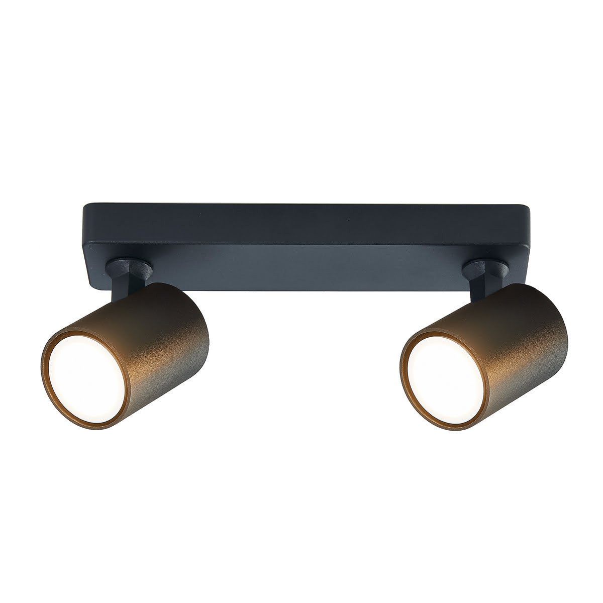 Podwójny spot Snow, wykonany z czarnego metalu, z miejscem na dwie żarówki o gwincie GU10. Spot można zamontować zarówno na ścianie, jak i suficie.