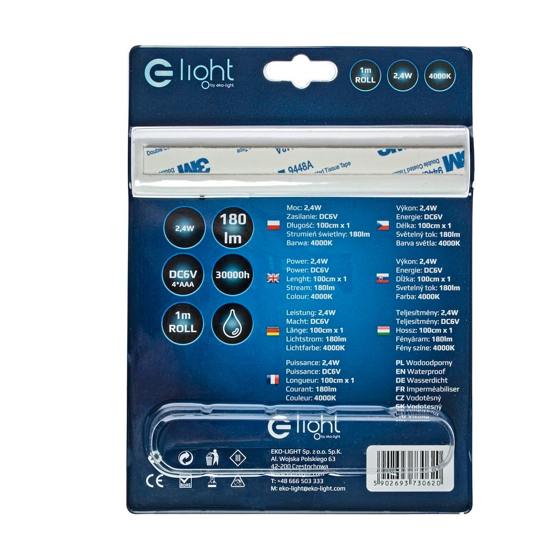 Taśma Led marki EKO-LIGHT 1M wyposażona w sensor, zasilanie to 4x bateria typu AAA barwa 4000K moc światła 180lm. Produkt do zastosowania wewnatrz budynków, wysoka jakość i trwałość jest główną jego zaletą. Za pomocą taśm LED możesz stworzyć romantyczną atmosferę sypialni, energiczną atmosferę imprezową lub przyciągający wzrok akcent, który nada każdej przestrzeni niepowtarzalny, niestandardowy projekt