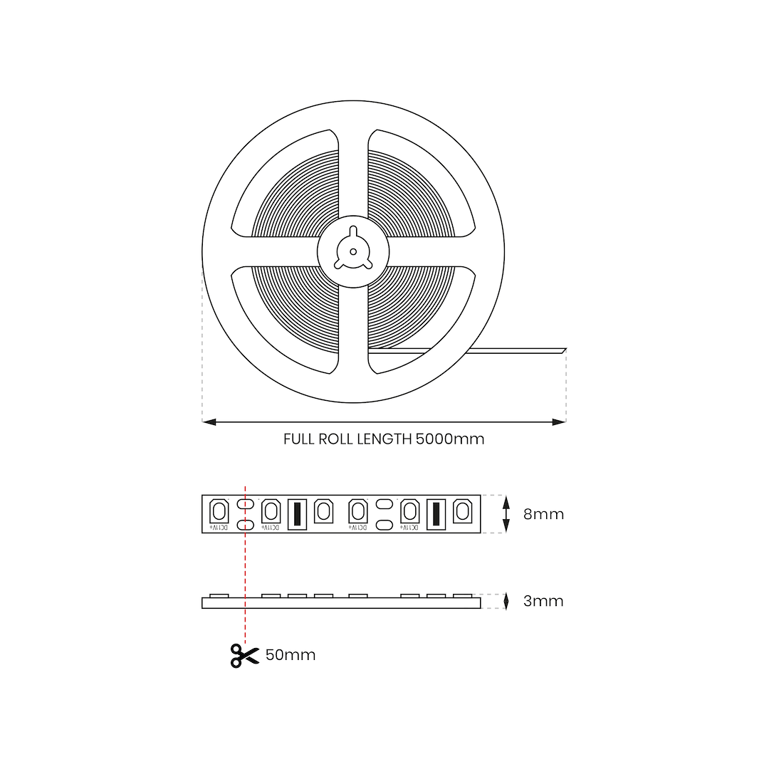Taśma składa się z 600 diód LED SMD (120/m) i ma mozliwość cięcia w wyzanczonych do tego punktach co 2,5cm.