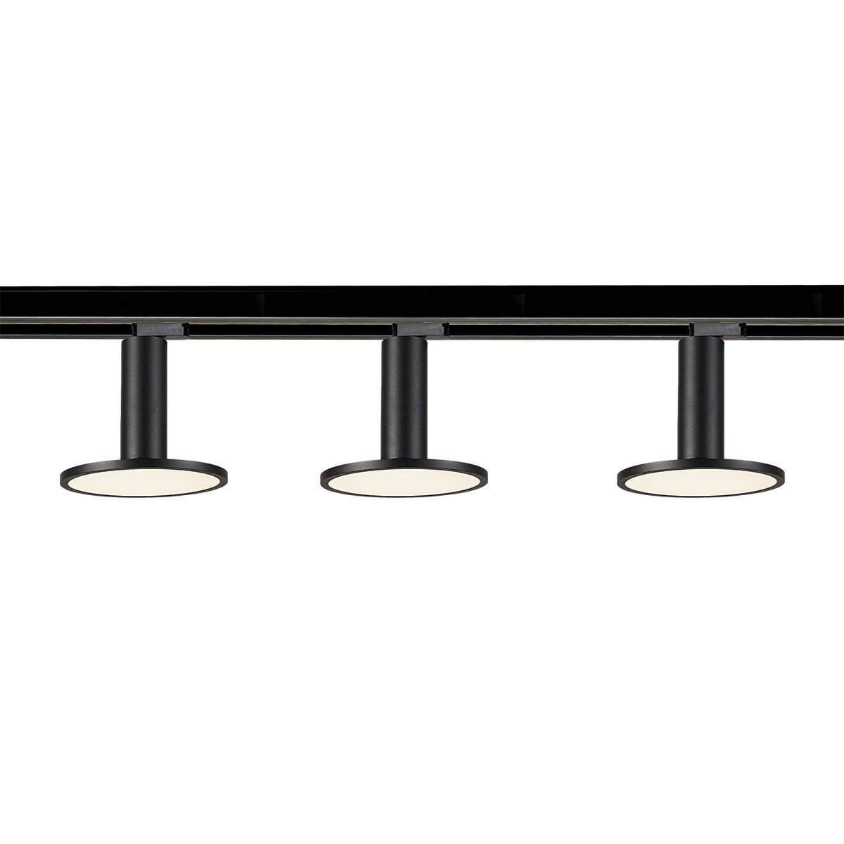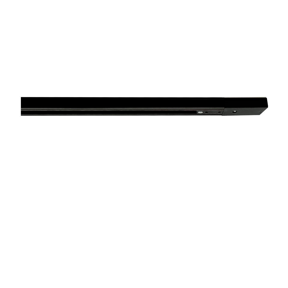 Kompletny zestaw oświetlenia szynowego Aqualion 1F w czarnym kolorze zawiera szynę o długości 150 cm przeznaczoną do oświetlenia szynowego, trzy reflektory do montażu na szynie oraz zasilacz końcowy i zaślepkę.