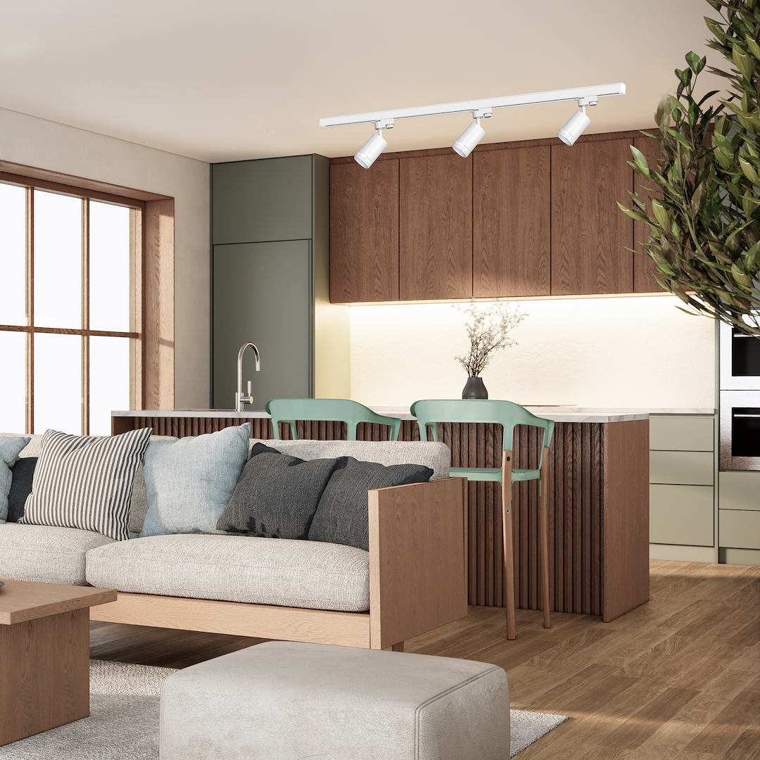 Nowoczesny zestaw oświetleniowy marki Milagro przeznaczony do montażu w systemie szynowym. W skład zestawu wchodzą trzy reflektorki z rodziny Pipe (1xGU10), oraz szynoprzewód 1-obwodowy o długości 1,5m. Rozwiązania tego typu mają szerokie zastosowanie zarówno wewnątrz pomieszczeń mieszkalnych jak i komercyjnych. Reflektorki możemy wpinać w dowolnym miejscu szyny, przesuwać, obracać – dzięki czemu w łatwy sposób skierujemy światło, w wybrany przez nas punkt. Dodatkowym atutem opraw jest wymienne źródło światła, dzięki czemu łatwo dopasujemy odpowiednią barwę światła, a także w razie awarii bez problemu wymienimy żarówkę.